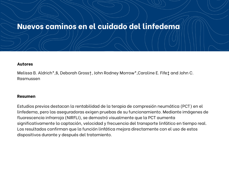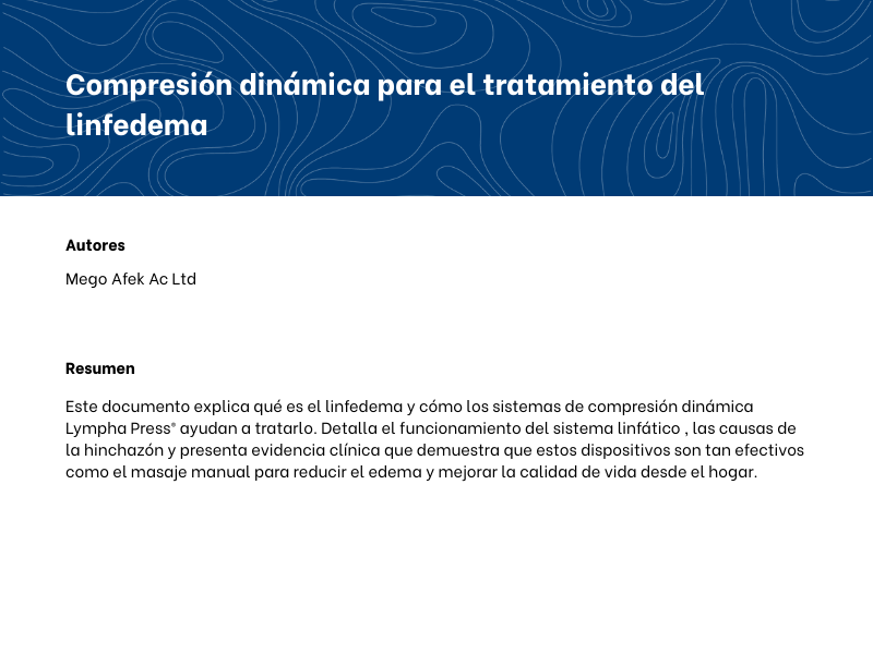 También encontrarás estudios que evalúan la eficacia de Lympha Press® en la mejora de la función linfática, reducción de la inflamación y la mejora de calidad de vida en pacientes oncológicos.